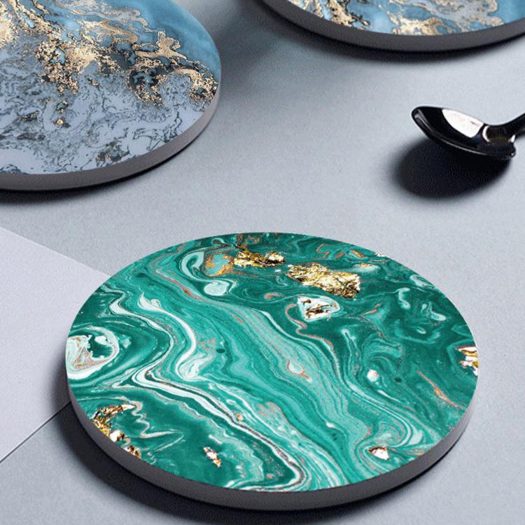 Ocean marble coaster cork ceramic non-slip insulation pad absorbs water and prevents scalding