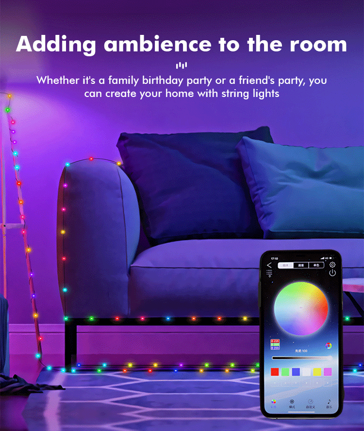 Colorful Smart Voice-Controlled Ambient Christmas String Lights